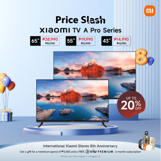 For those in the market for smart devices and appliances, the Xiaomi TV A Pro Series is also slashed down, among other AIoT pieces. The 65-inch variant is going for P28,990 (from P32,990 SRP), while the 55-inch is now at P19,990 (from P22,990) and the 43-inch is at P14,990 (from P16,990).