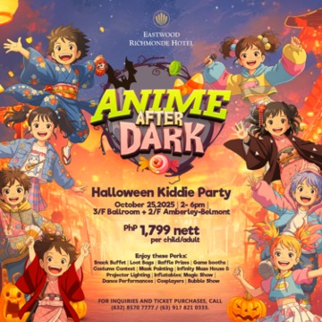 So get your capes, wands, and katana swords ready and transform into the Super Saiyan, Sailor Guardian, or Pokemon Master of your dreams and party anime-style this Halloween at Eastwood Richmonde Hotel. For inquiries and ticket purchases, call (632) 8570 7777 or (63) 917 821 0333, or email fb@eastwoodrichmonde.com.