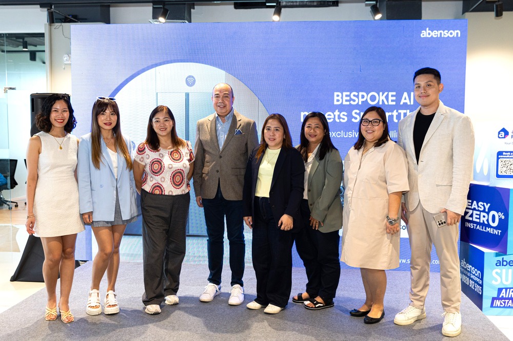 (From L-R) Samsung Electronics Philippines Corporation (SEPCO) HA product marketing head Chesca Villas, Abenson marketing head Apple Ma, Abenson HA merchandising head Cheng Del Mundo, SEPCO head of home appliances Ramon Medina, Abenson WM merchandising manager Hana Badilla, Abenson REF senior merchandising manager Moneth Manigbas, SEPCO HA GMA sales head Louiline Serrano, and SEPCO key account manager for Abenson Jude Mendoza