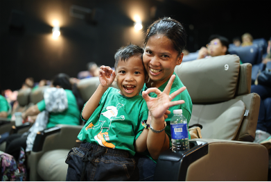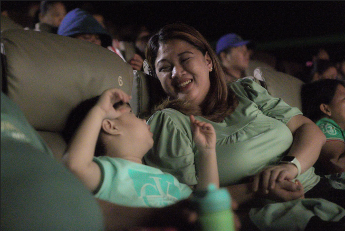 A child on the autism spectrum shares a smile with their loved one during the sensory-friendly screening of “Firefly” at SM Southmall.